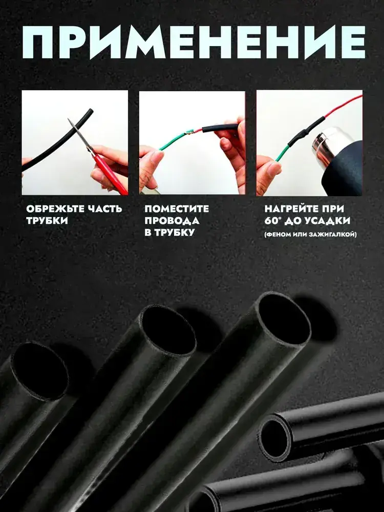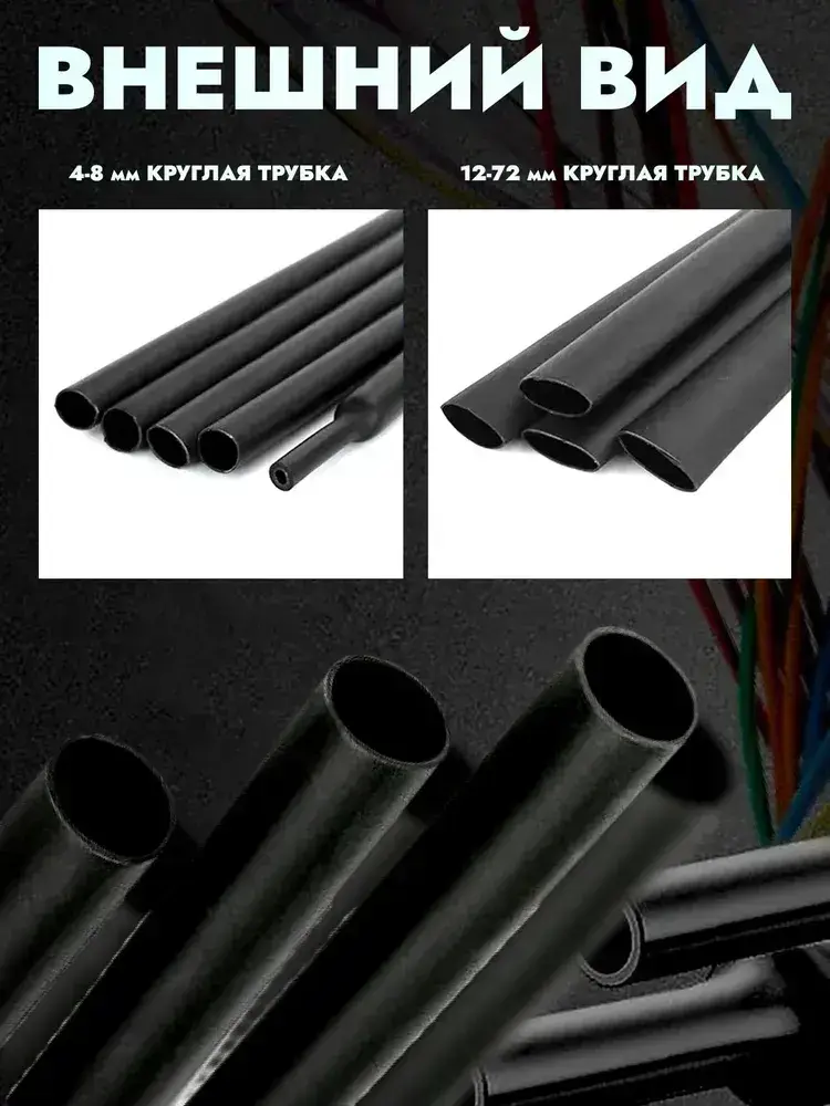 Термоусадка водонепроницаемая для проводов с клеевым слоем 3 метра черная, усадка 4:1. Термоусадочная трубка для проводов. Диаметр 4,6,8мм