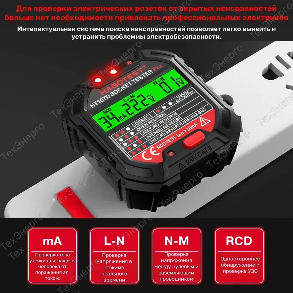 Тестер, устройство проверки электрических розеток, прибор для проверки УЗО Habotest HT107D