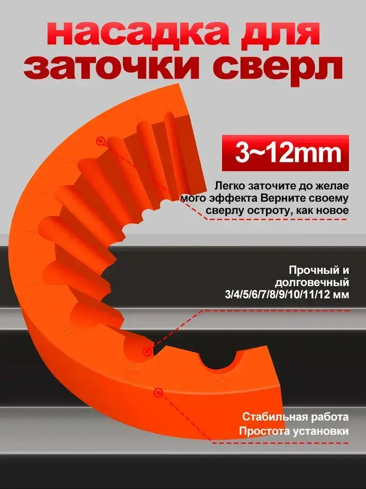 Точилка для сверл 3-12 мм применяемый 125 болгарка быстрая и точная заточка что позволяет просверливать больше отверстий 1 шт Оранжевый