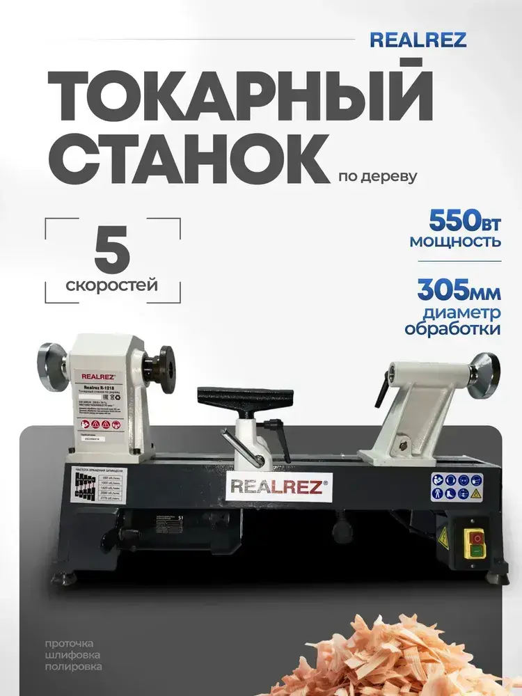 Токарный станок по дереву REALREZ R-1218, 550 Вт, 220 В