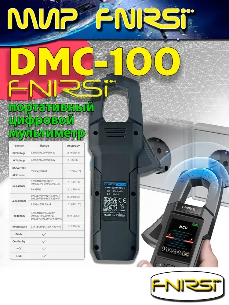 Токовые клещи FNIRSI DMC-100 мультиметр цифровой тестер-клещи