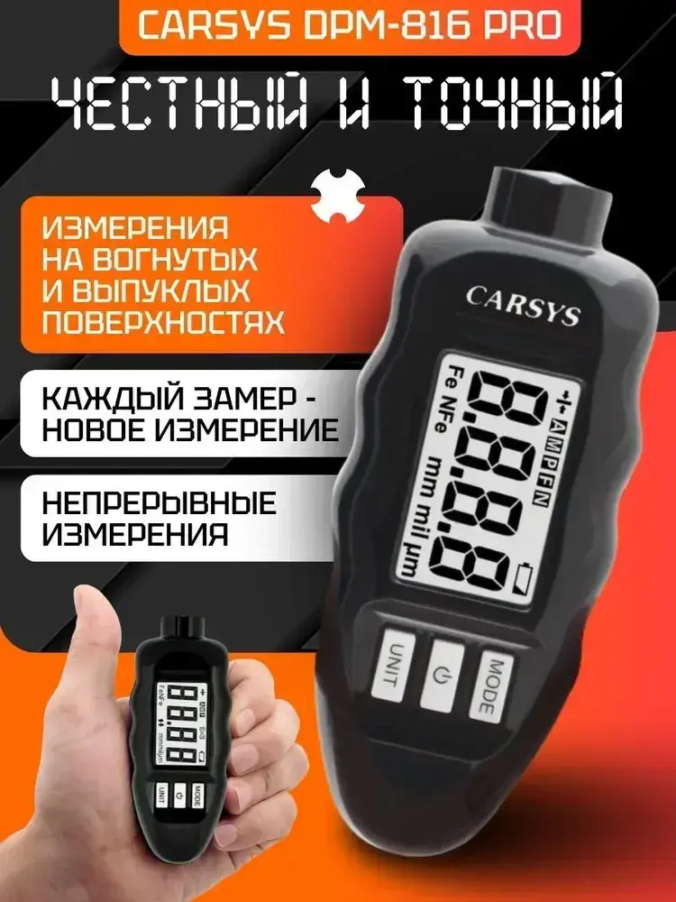 Толщиномер автомобильный CARSYS DPM 816 PRO, автоматическая калибровка, по всем видам металлов, оцинковка, 0-3500 мкм