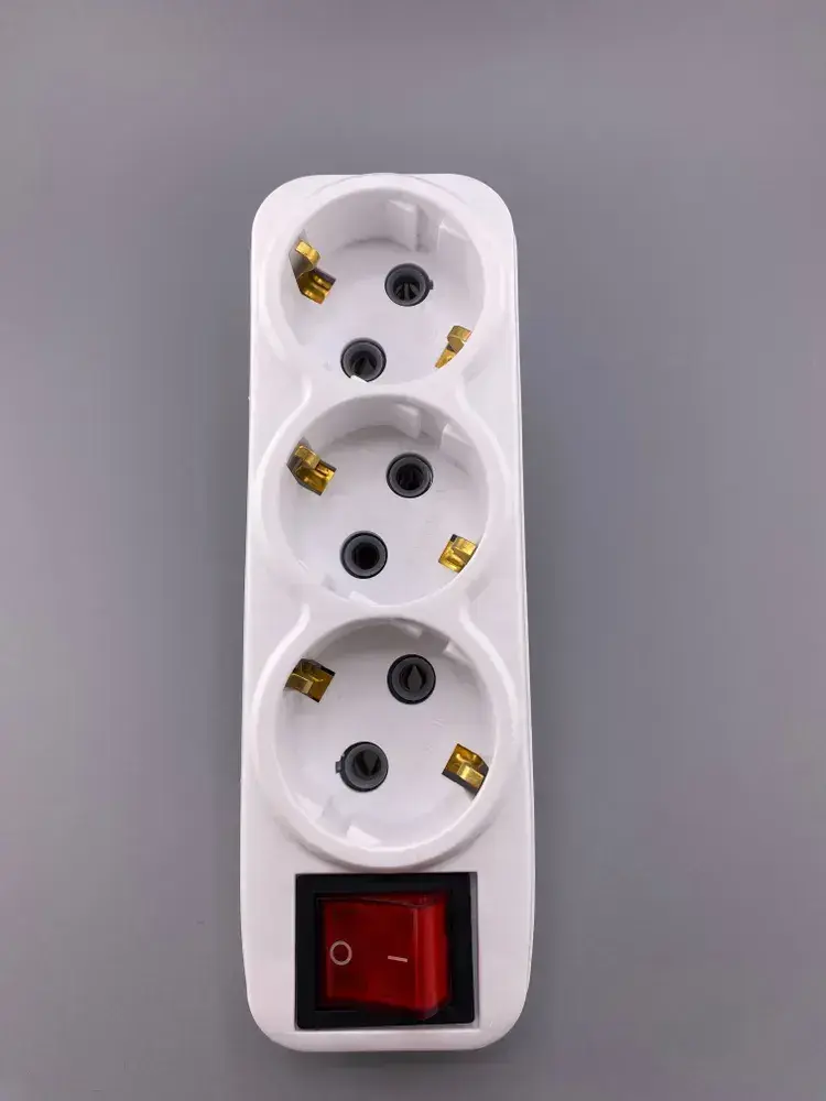 Тройник для розетки электрический с выключателем на 3 гнезда, Разветвитель в розетку 220 плоский с заземлением белый 16А