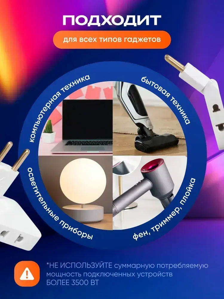 Тройник для розетки поворотный, разветвитель электрический усиленный 16А ElectroMag