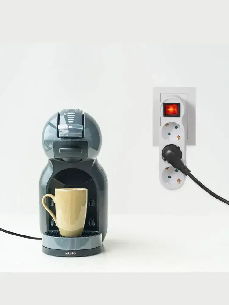 Тройник электрический с выключателем на 3 розетки, Разветвитель с заземлением и защитой от детей 16А 250В MartyHome