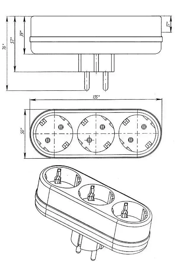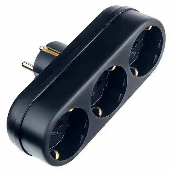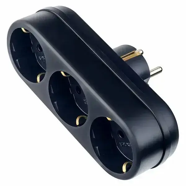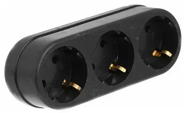 Тройник, разветвитель сетевой с заземлением TOKER 3L3, черный