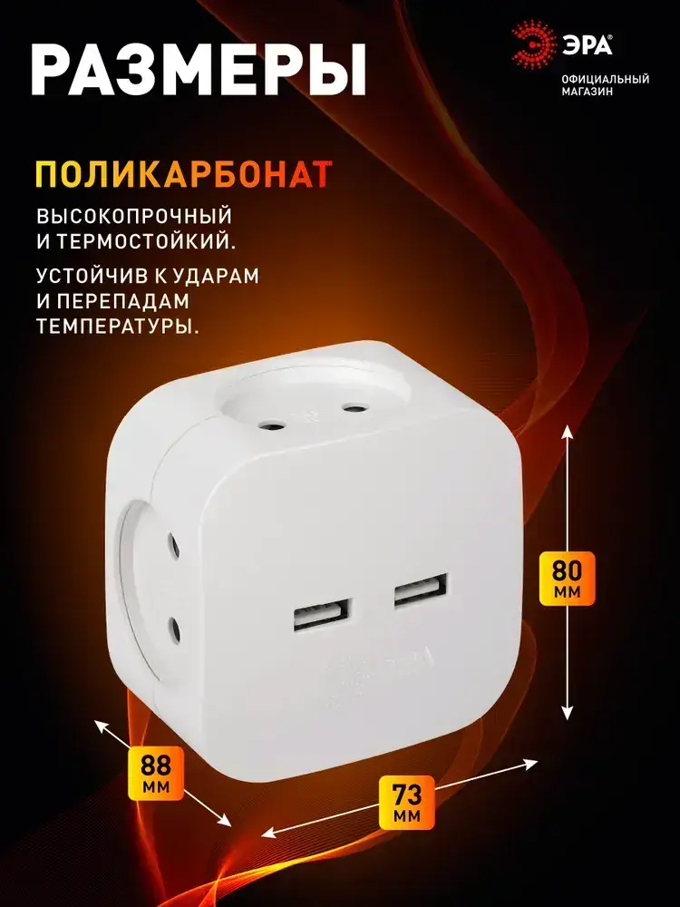 Тройник розетка электрический с usb ЭРА SP-4-USB-W / Разветвитель юсб без заземления, 4 розетки, 220V + 2xUSB 2400mA