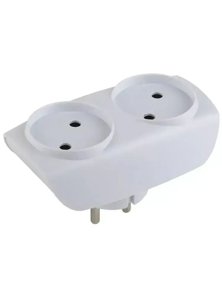 Тройник SP-2-W ЭРА / Тройник розетка электрический / Разветвитель без заземления, 2 розетки, плоский, 16А, белый