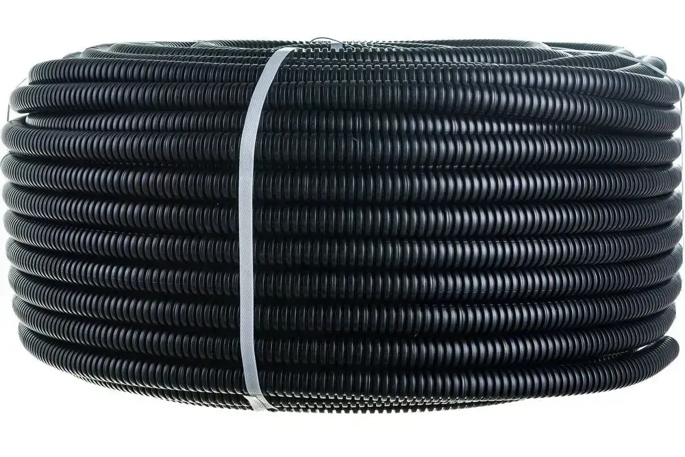 Труба гибкая гофрированная ПНД 16мм с протяжкой лёгкая (25м) чёрный