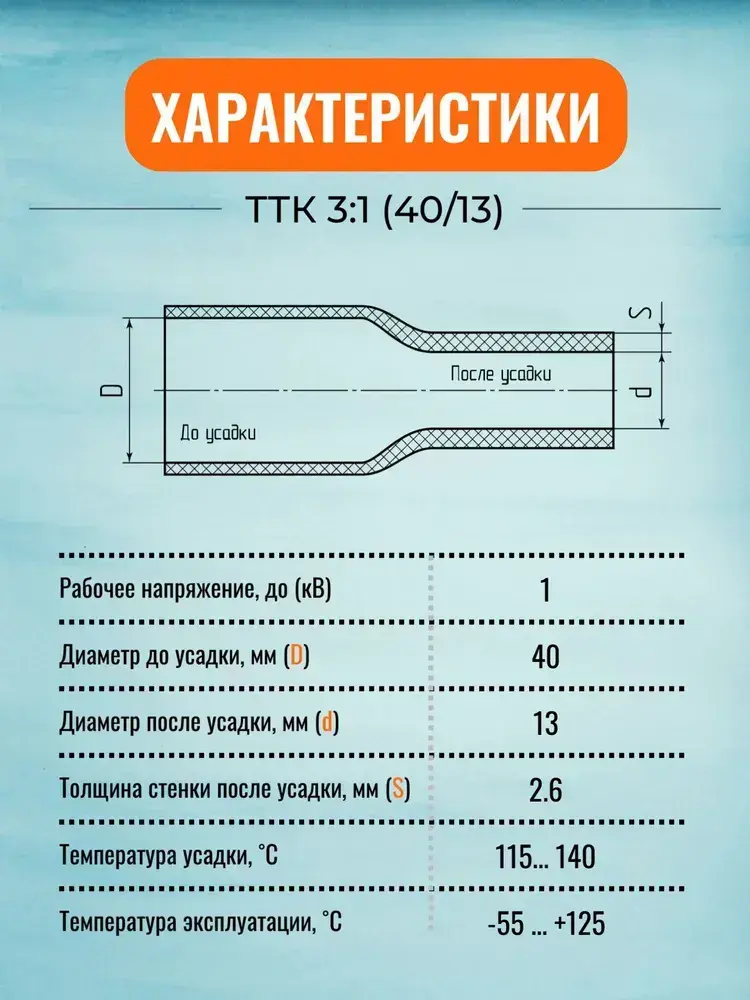 Трубка термоусадочная клеевая ТТК(3:1)-40/13 чёрная с коэффициентом усадки 3:1 (КВТ)