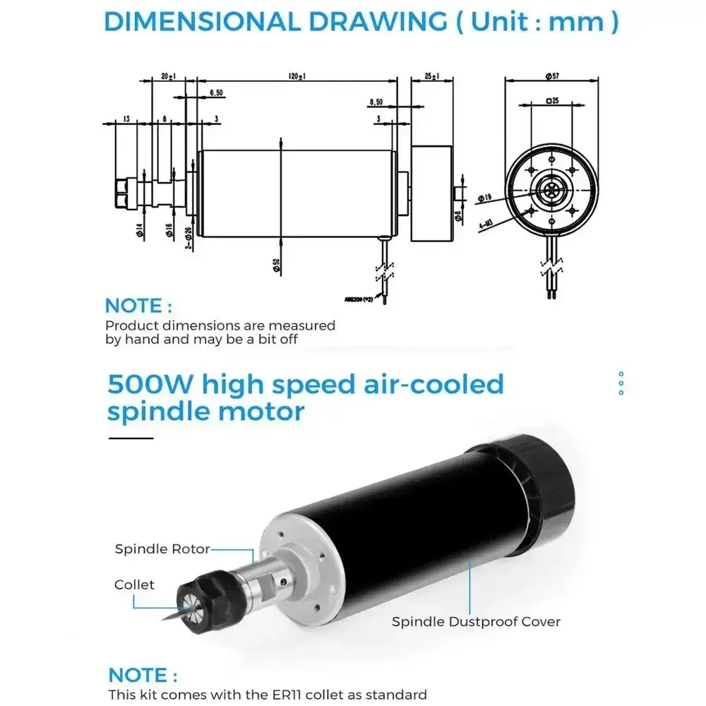 Twotrees 500 Вт воздушное охлаждение шпинделя двигателя ER11 12000 об/мин регулятор мощности для TTC450 деревообрабатывающий гравировальный станок с ЧПУ маршрутизатор