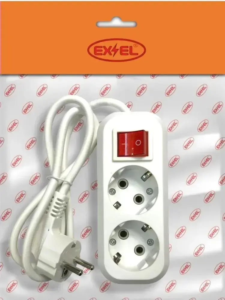 Удлинитель 2 гнезда 1 метр с заземлением и выключателем УВ21321