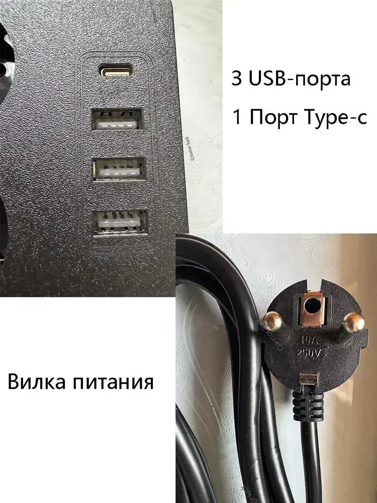 удлинитель бытовой lannuo 2 метра 10 розеток портов 3 usb 1 type c