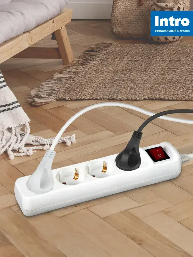 Удлинитель электрический Intro UES430-W с заземлением с выключателем 4 розетки 3 м ПВС 3x0,75мм2 10А белый