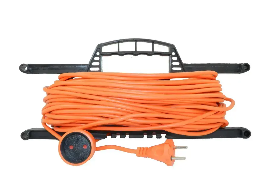 Удлинитель на рамке уличный силовой садовый ПВС 2х0.75 мм 50 метров, влагозащитный литой штепсель для газонокосилки и триммера. Строительный удлинитель 50 метров, 1 гнездо оранжевый