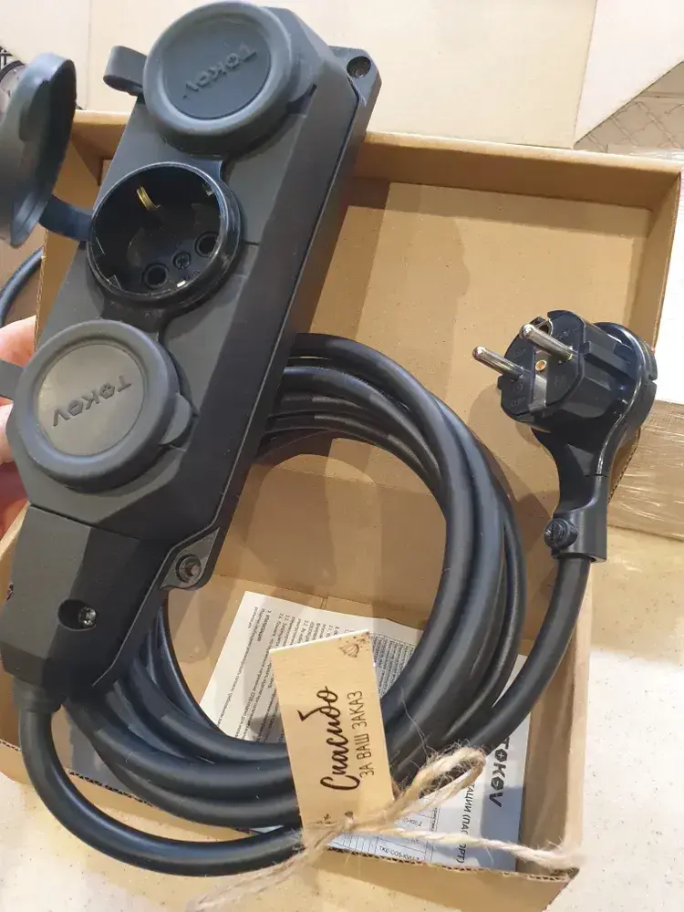 Удлинитель С плоской потайной Вилкой с Кольцом 3 метра 3 влагозащитные розетки IP45 с защитными крышками с заземлением