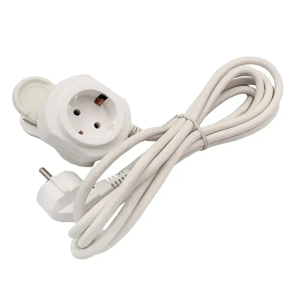 Удлинитель с прищепкой, длина шнура 3м., цвет белый