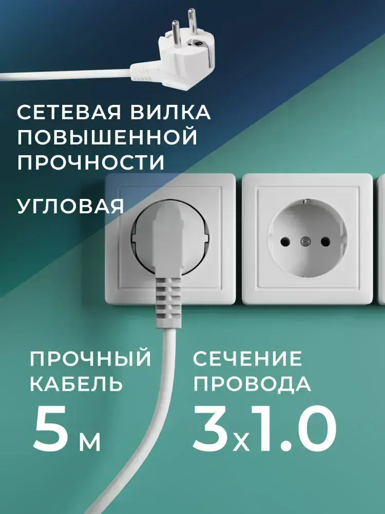 Удлинитель сетевой 4 розетки, 5 метров