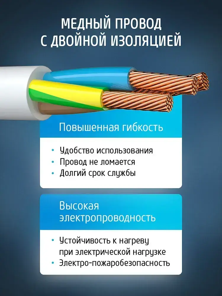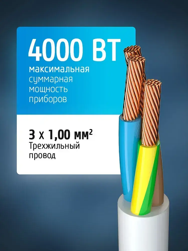 Удлинитель сетевой для розетки ФОТОН 16А 5 метров 3 розетки с выключателем с заземлением белый, ГОСТ
