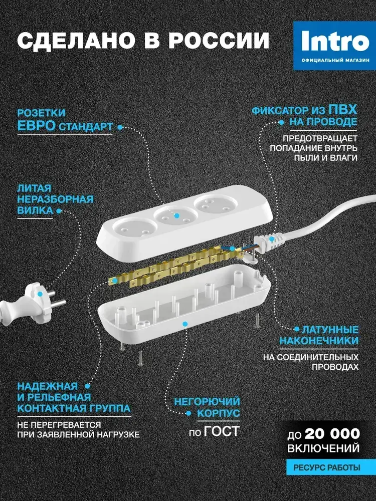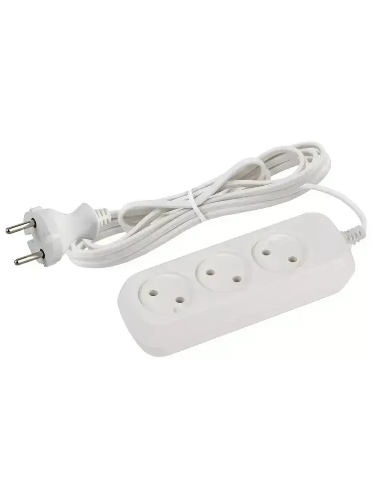 Удлинитель сетевой электрический Intro U330-W без заземления 3 розетки, 3 м, ШВВП 2х0,75мм2, 6A, белый