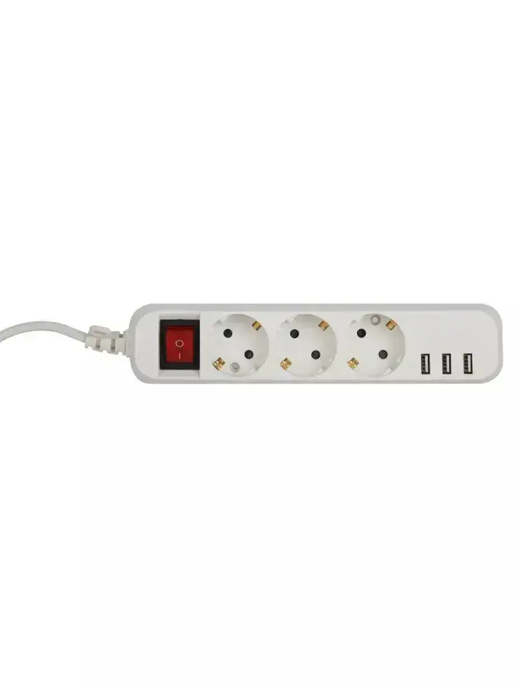 Удлинитель сетевой электрический с заземлением с выключателем ЭРА U-3es-3m-USB / Сетевой фильтр 3 розетки, 3xUSBA, 3м, 10А