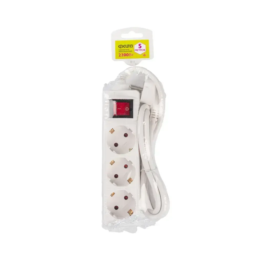 Удлинитель сетевой ФАZA с заземлением 3 гнезда, 5 метров FES-03-500