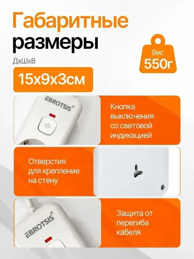Удлинитель сетевой фильтр с USB 5 розеток и 2 USB, 1 type C, кабель 3м, с выключателем 2500 Вт c быстрой зарядкой авто юсб (пилот)