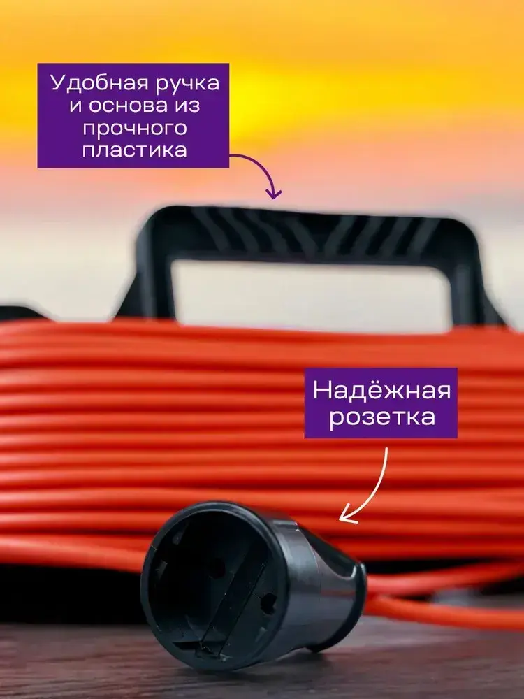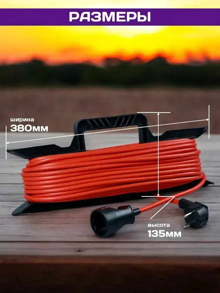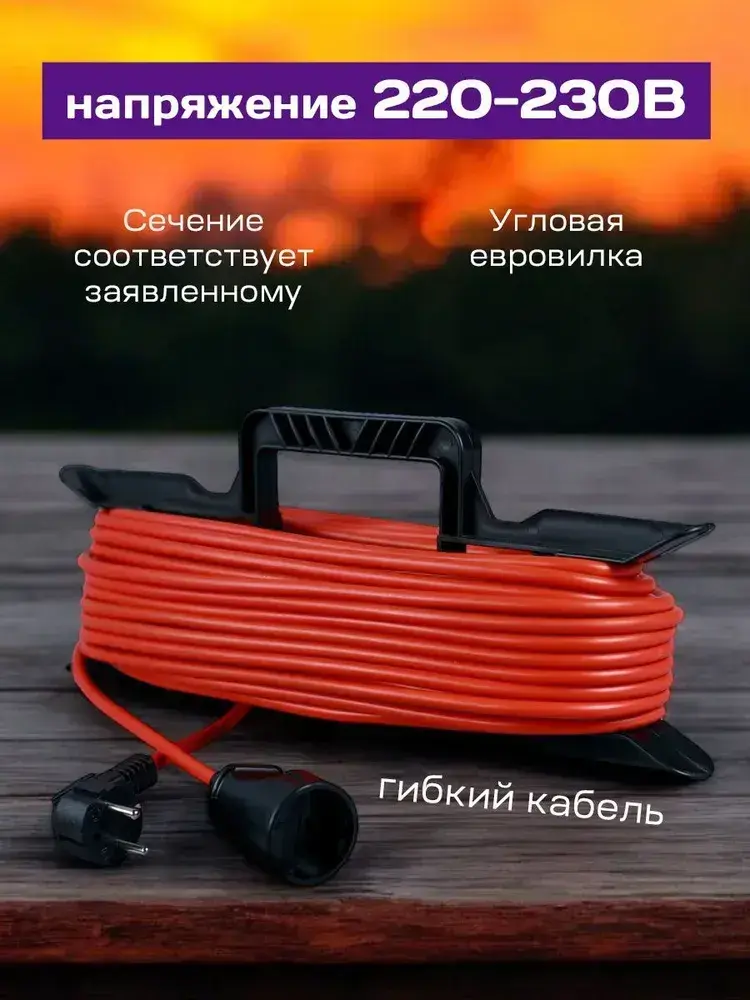 Удлинитель силовой садовый на рамке 30 метров ПВС 2х1,5 уличный шнур на 1 розетку