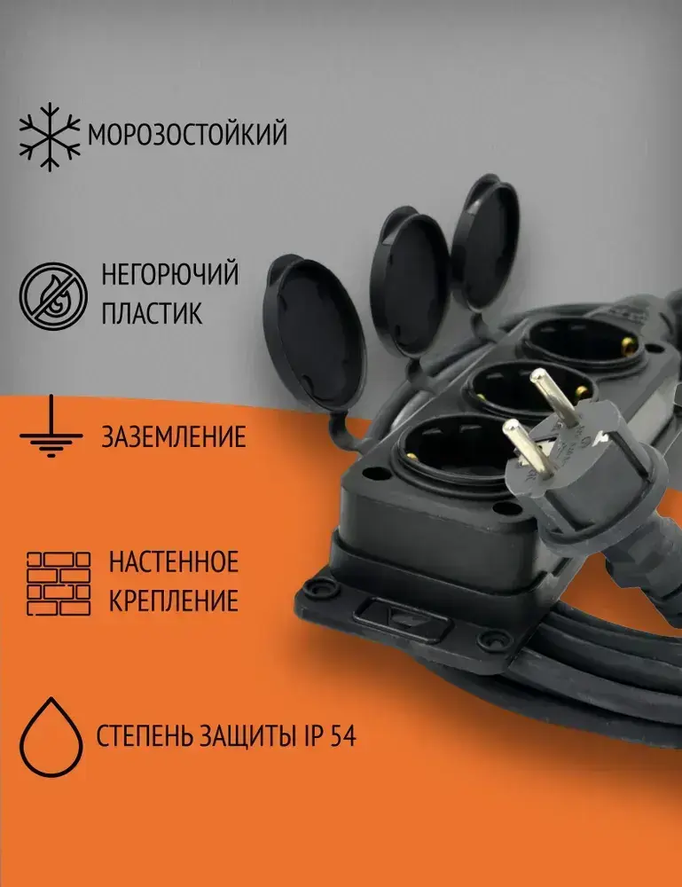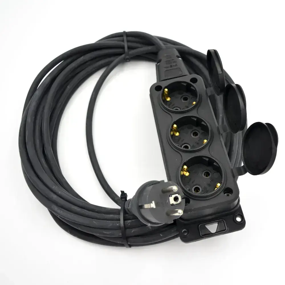 Удлинитель силовой строительный КГТТ 3х1.5 25А, садовый удлинитель 10м, для сварки, газонокосилки и тримера, 3 розетки с крышками, морозостойкий