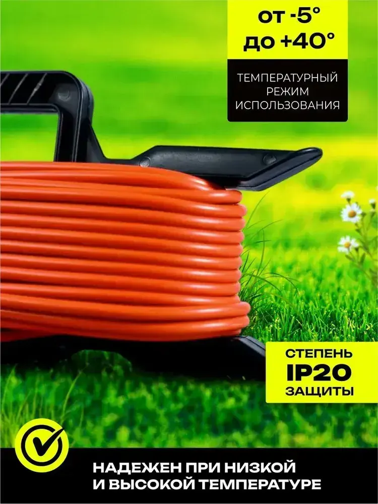 Удлинитель уличный силовой на 30 метров, 1 гнездо, электрический кабель для дома и дачи, газонокосилки, бытовой, садовый пилот 16А на 2200Вт, оранжевый 2х1,5