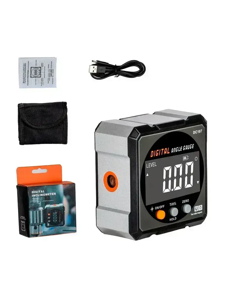Угломер цифровой 2 в 1 с лазерным уровнем, влагозащита IP67, инклинометр с магнитным креплением и USB-зарядкой