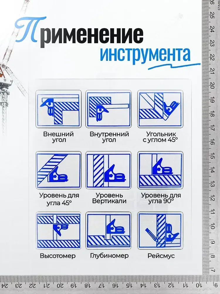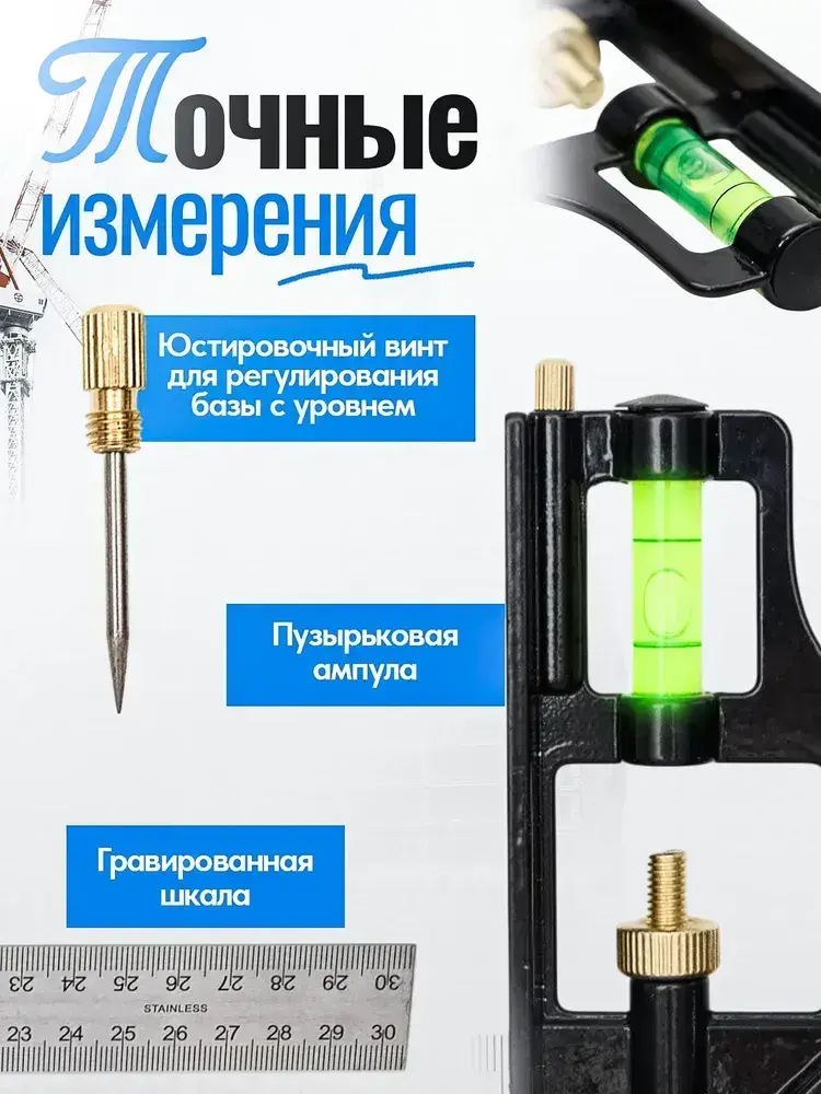 Угольник с уровнем 300 мм, линейка с маркировочной иглой