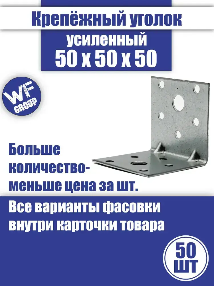 Уголок крепежный усиленный 50 x 50 x 50 мм, 50 шт.