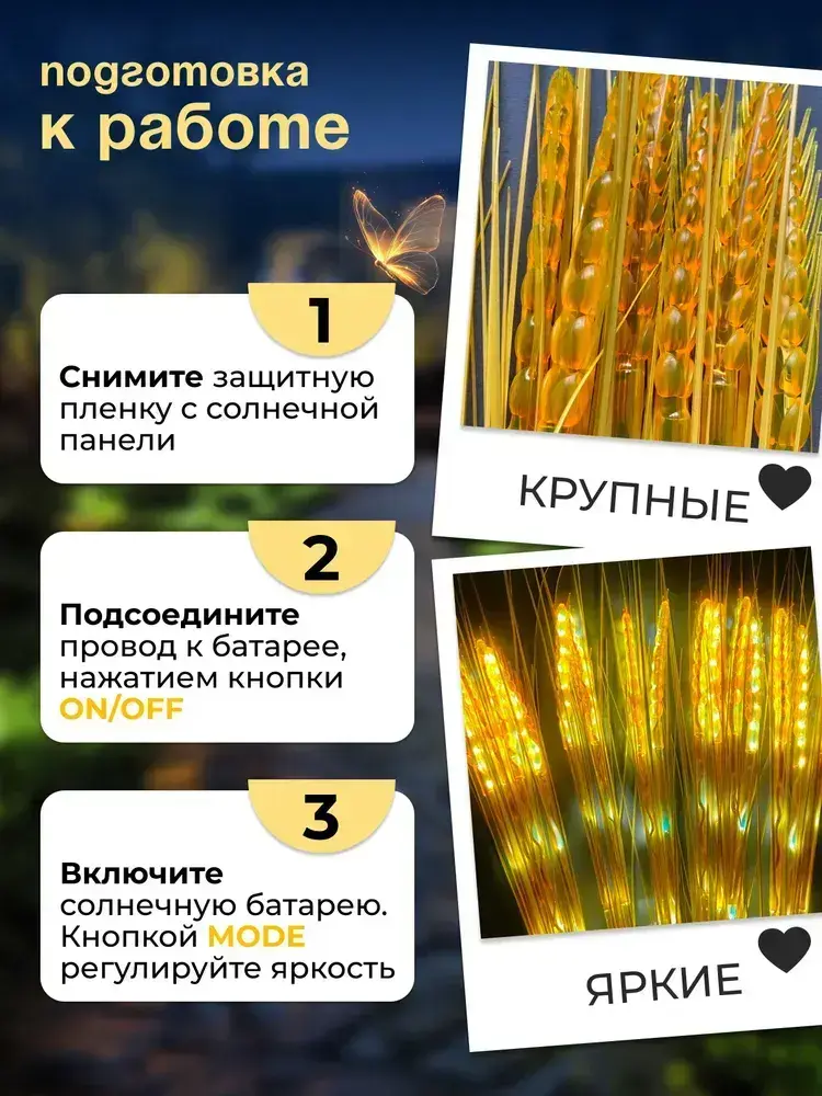 уличные светильники на солнечных батареях садовые/ колоски 15 штук