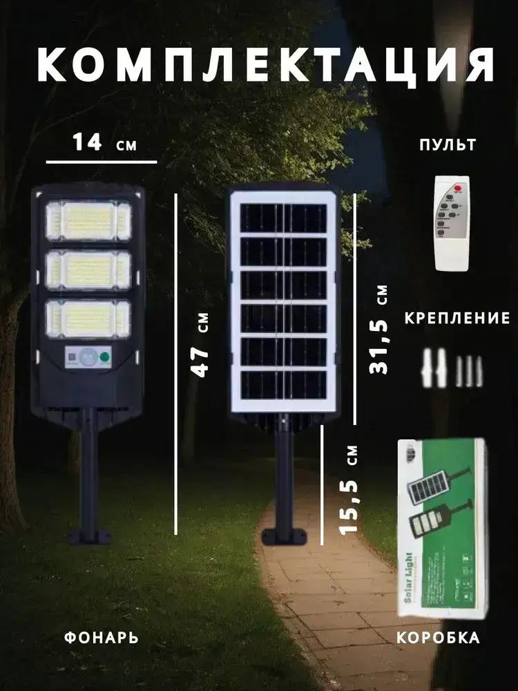 Уличный фонарь на солнечной батарее с датчиком движения