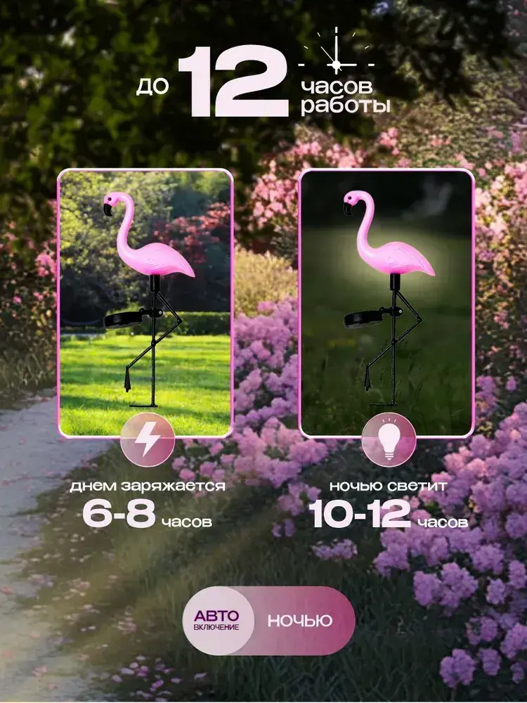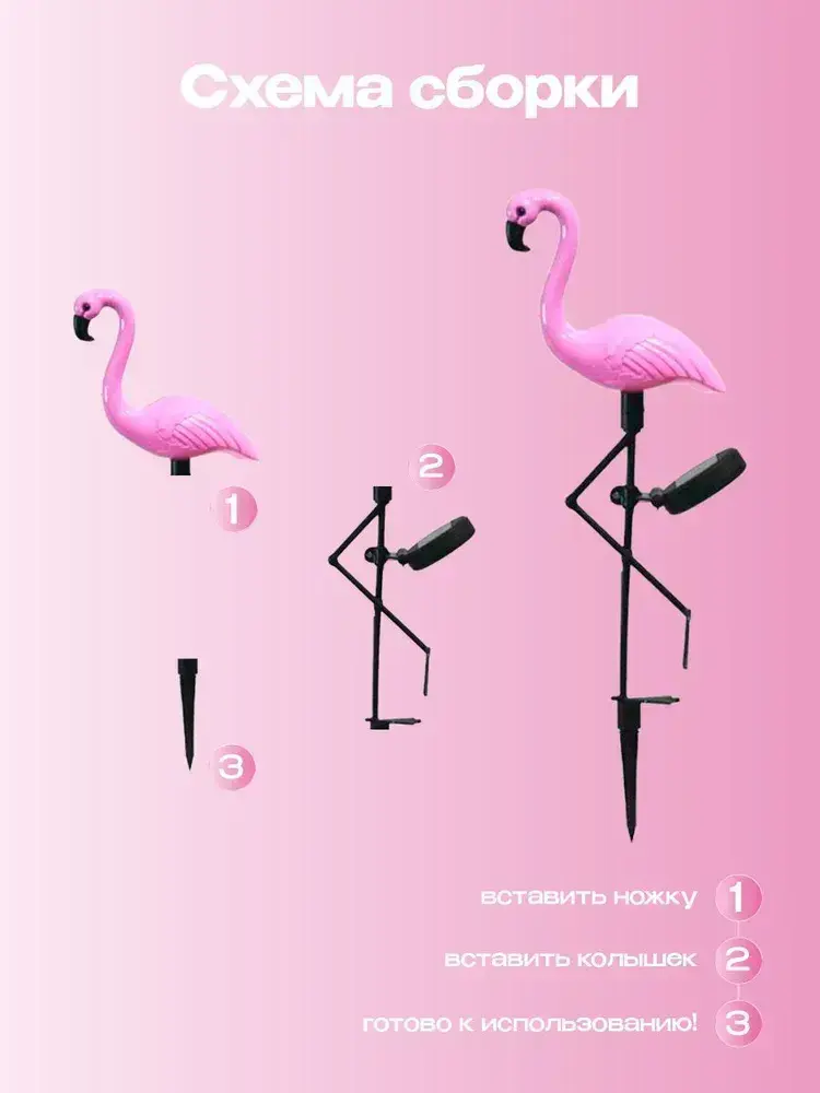Уличный светильник на солнечной батарее фламинго 3 шт., фонарики садовые