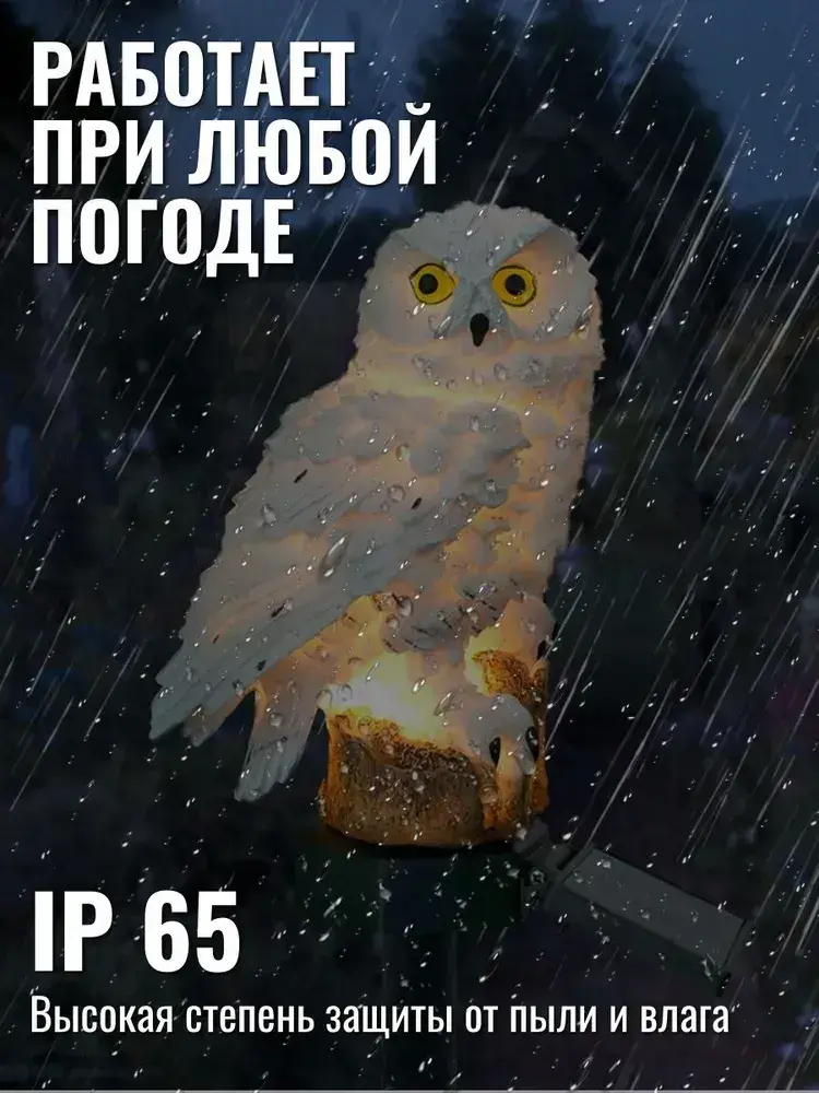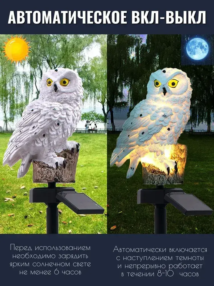 Уличный светильник на солнечной батарее "Сова" 1 шт, теплое свечение/ Фонари садовые на солнечных батареях