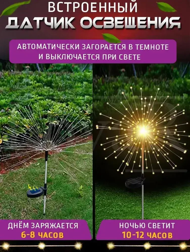 Уличный светильник на солнечной батареи "Одуванчик", 2 шт теплый цвет