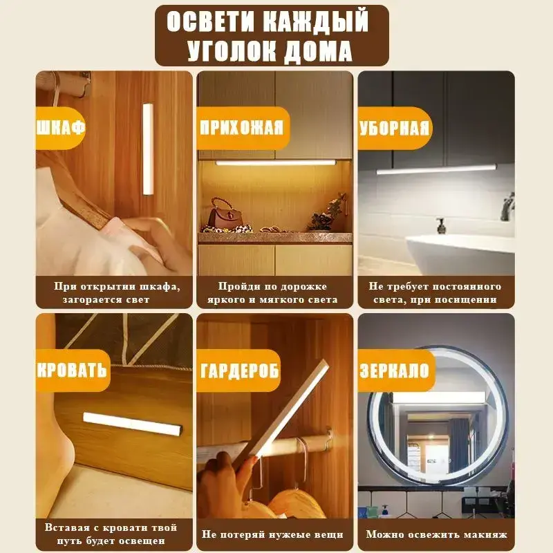 Умный ночник LED светильник 10 см. лампа на аккумуляторе с датчиком движения и датчиком света 3шт.