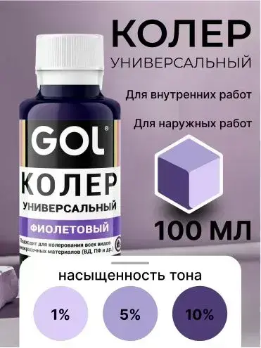 Универсальный колер GOL №68 Фиолетовый, колеровочная паста для изменения цвета краски, шпаклёвки, лака на стенах, фасаде