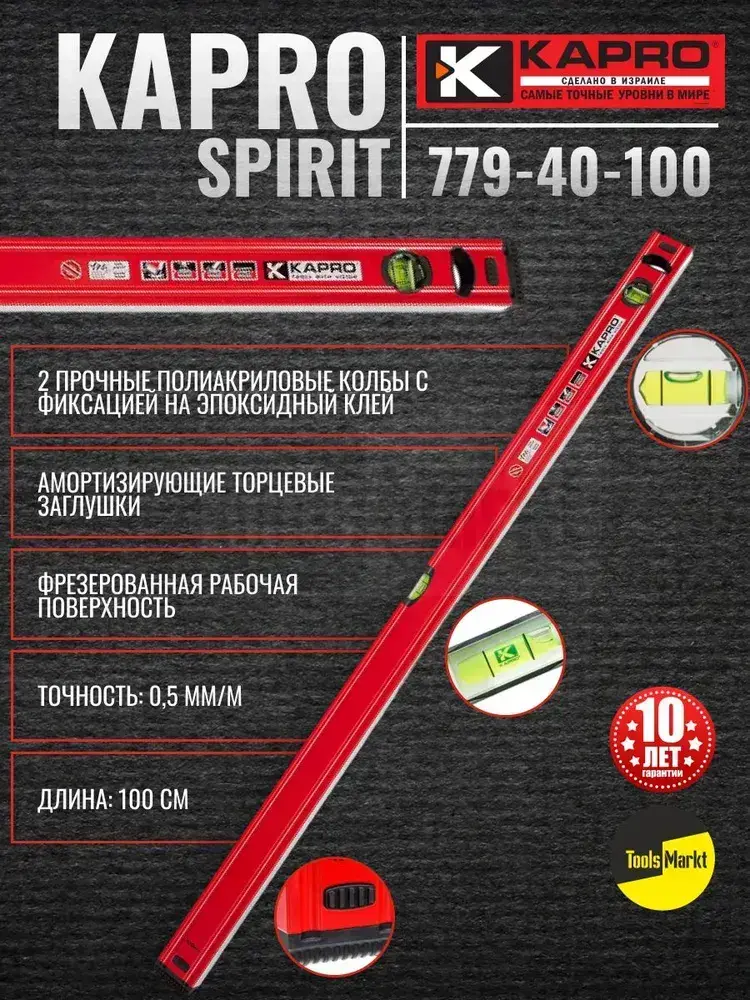 Уровень строительный 100 см KAPRO SPIRIT 779-40-100 фрезерованная поверхность
