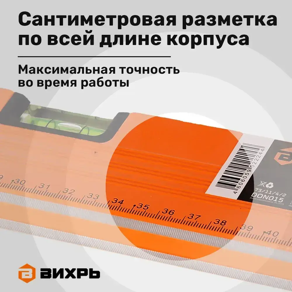 Уровень строительный 600 мм фрезерованный 3 глазка Вихрь