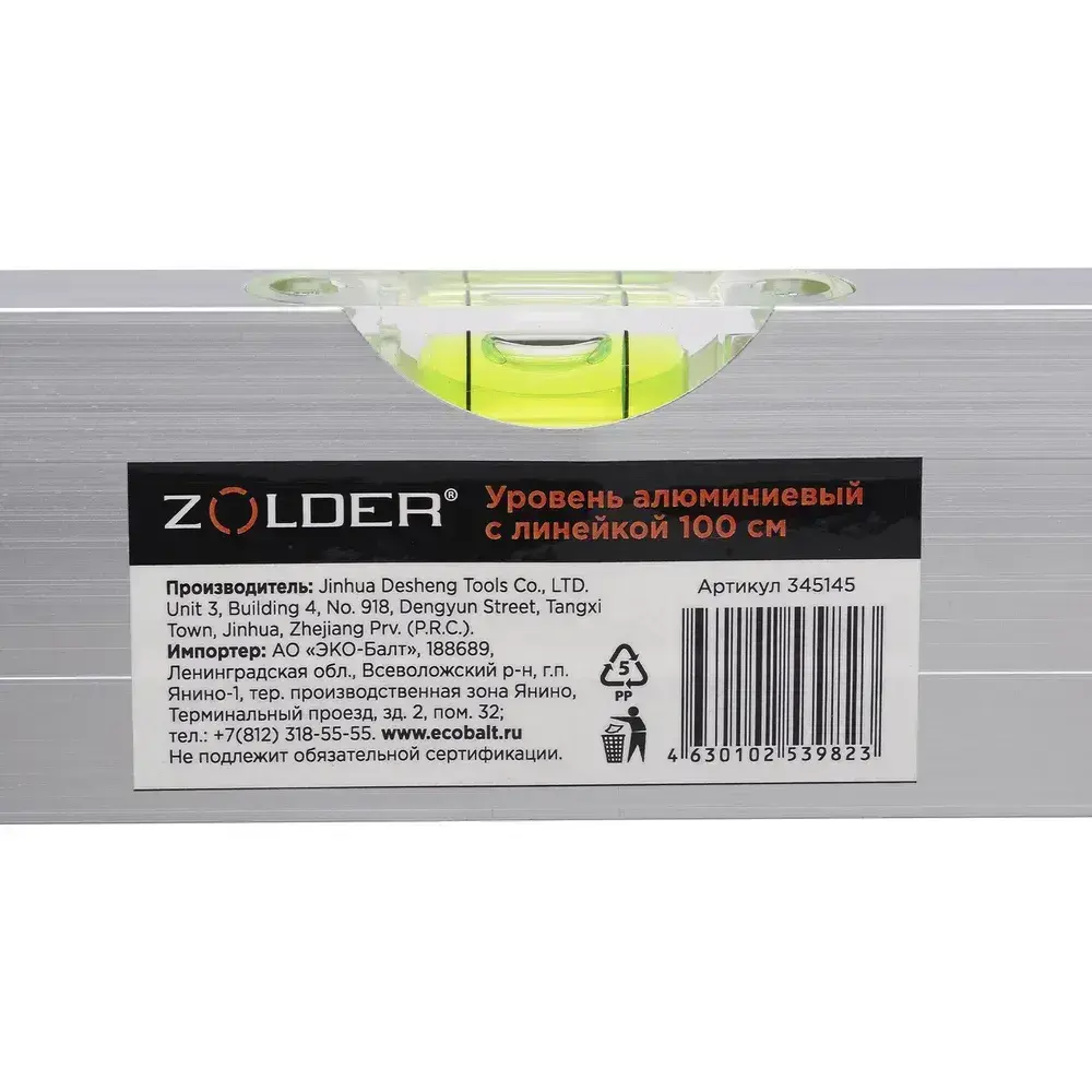 Уровень строительный Zolder алюминиевый с линейкой с 3 глазками 60 см