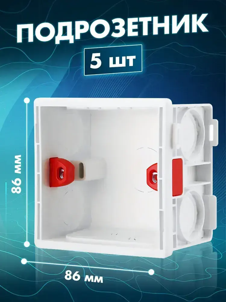 Установочная монтажная коробка для выключателей и розеток (подрозетник квадратный), 5 шт в комплекте