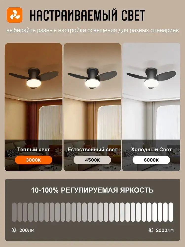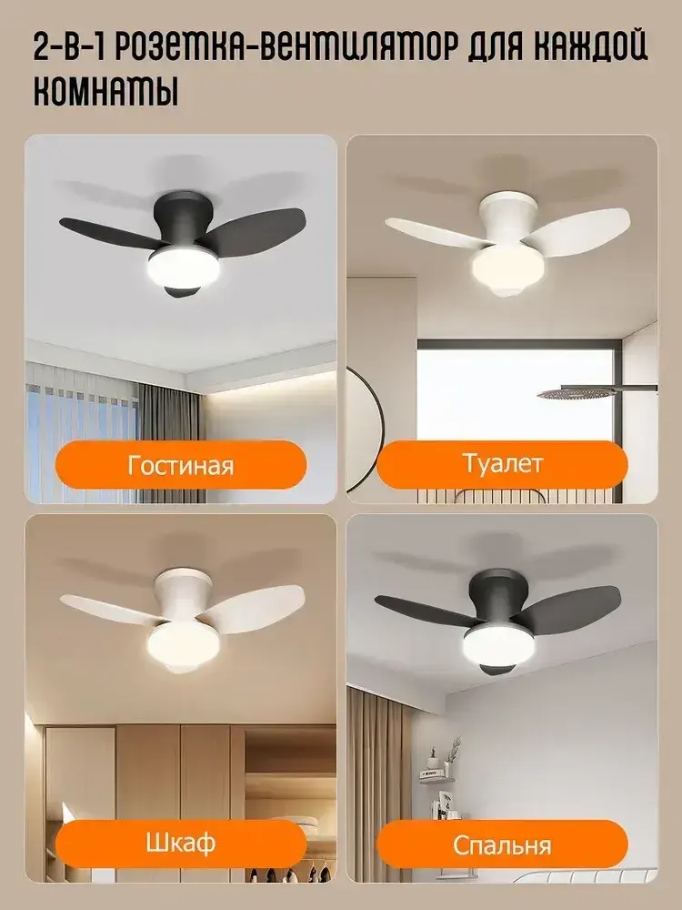Вентилятор потолочный с пультом, диаметр 88 см, Черный