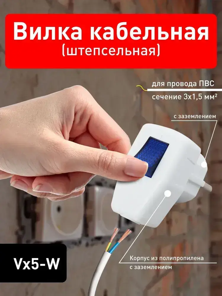 Вилка ЭРА Vx5-W с заземлением с выключателем 16A белая