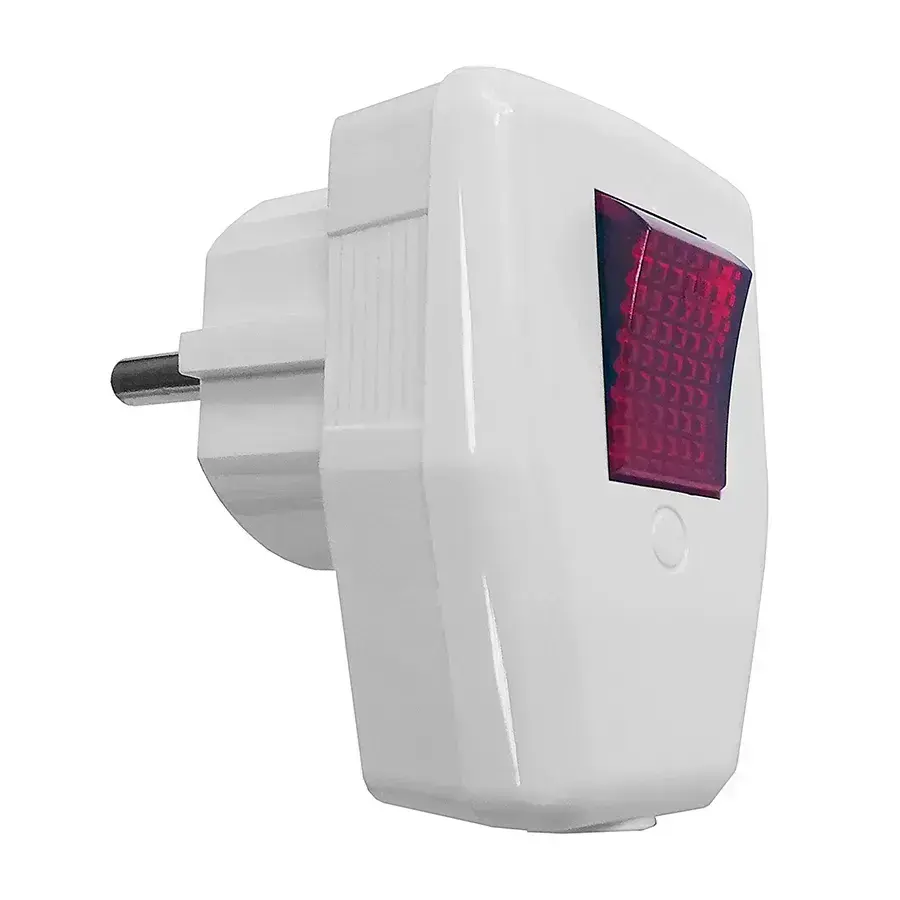 Вилка угловая с заземлением, с выключателем / вилка с кнопкой (16А, 250В), белая