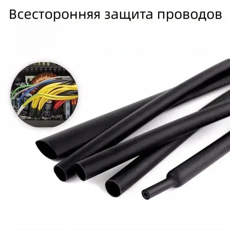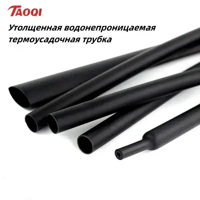Водонепроницаемая термоусадочная трубка диаметром 24 мм с клеевым слоем, соотношение термоусадочных свойств 4:1, черная, 1,22 метра