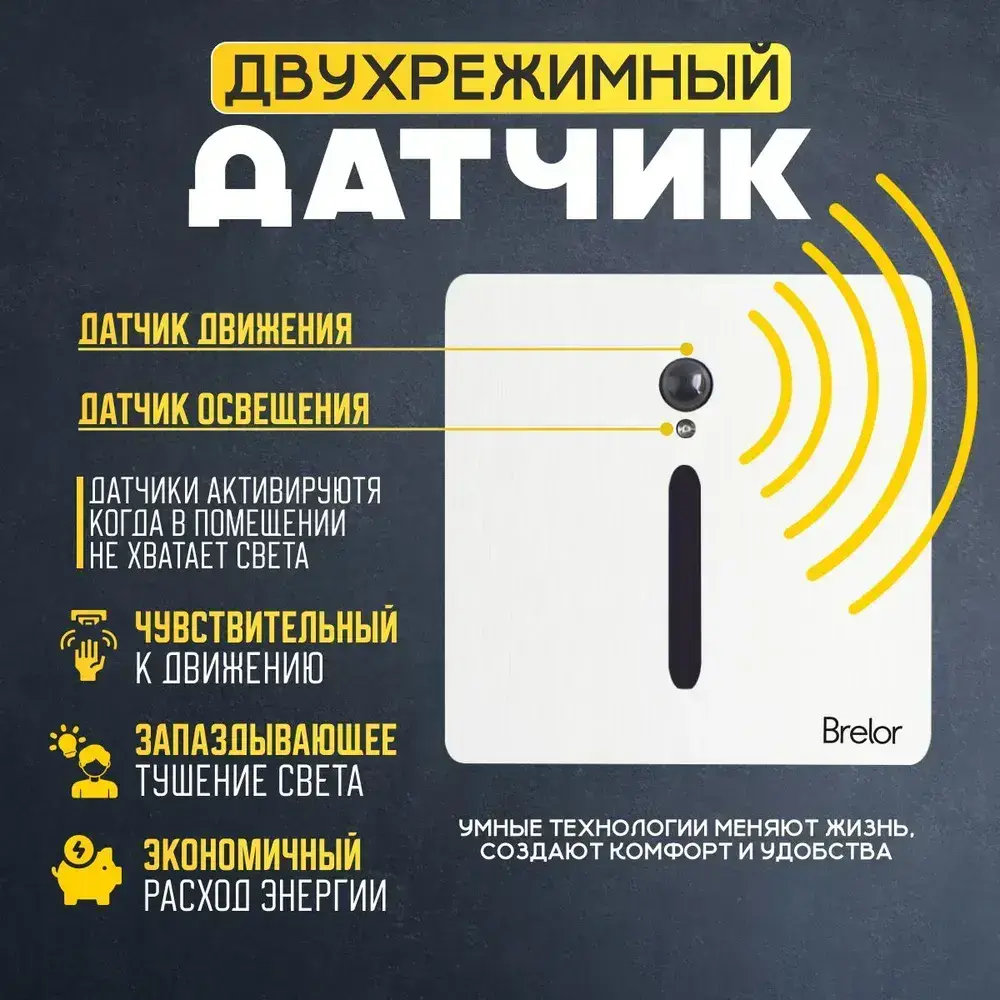 Встраиваемый светильник Brelor, с датчиком движения и освещения белый металлический тип А/ встраиваемые светильники в стену, с датчиком движения и освещения белый металический тип А