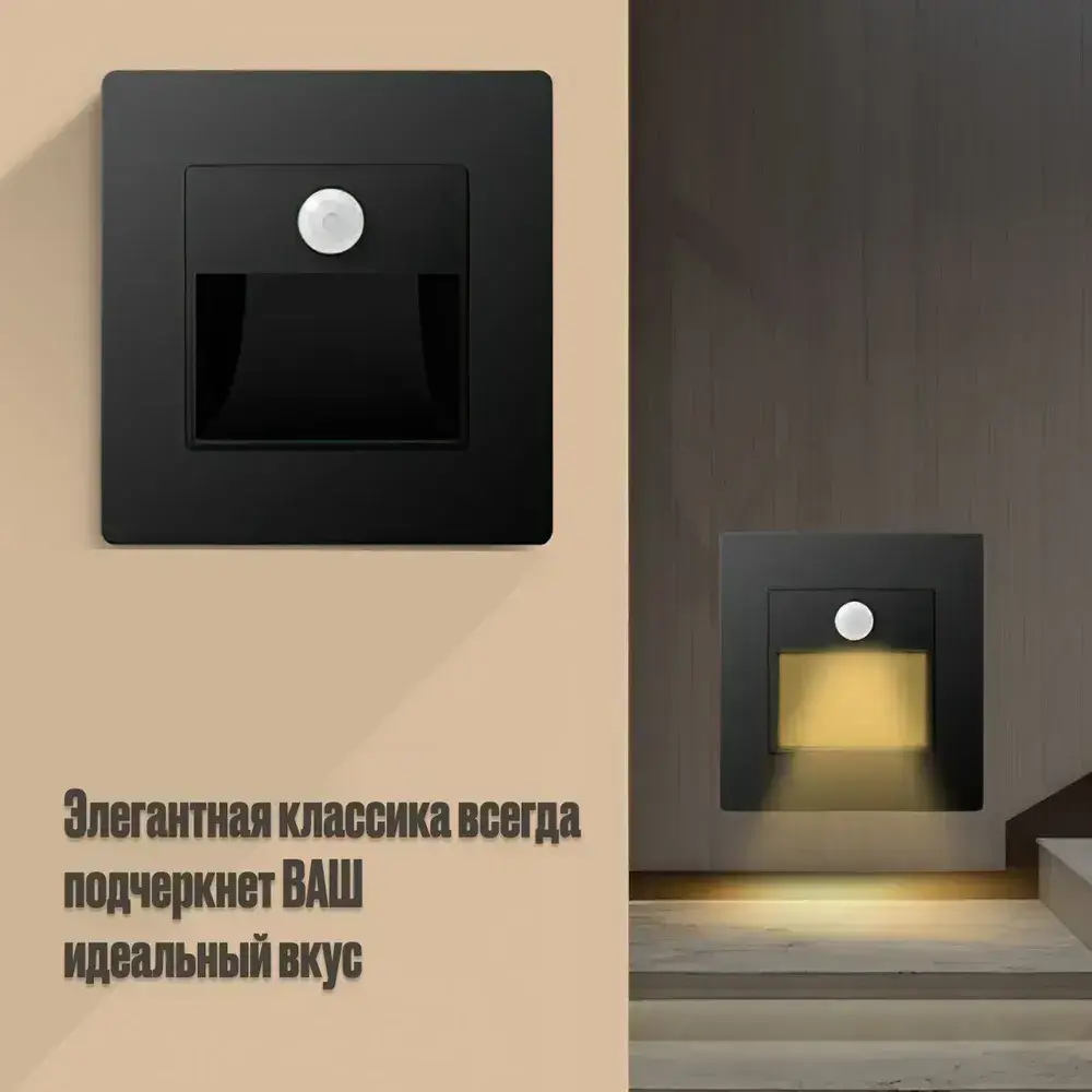 Встраиваемый светодиодный светильник для лестницы с датчиком движения (подсветка) для ступенек, черный